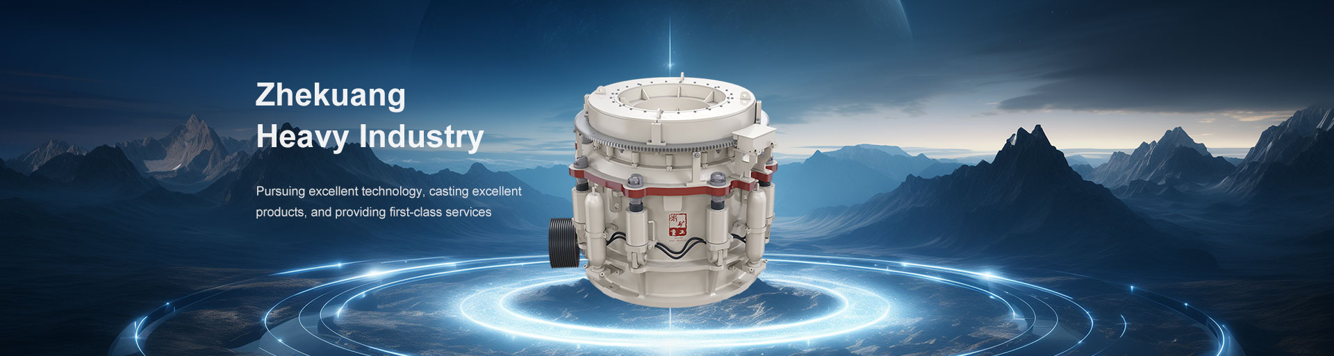 多缸液壓圓錐式破碎機工作時動錐沿著內部偏心軸做旋擺運動,靠近定錐的地方,物料受到動錐的擠壓和彎曲而破碎,偏離動錐的地方,已破碎的物料由于重力作用從錐底下落,整個破碎和排料過程沿著定錐和動錐之間的破碎腔連續(xù)依次進行。機體外圍均勻分布若干液壓油缸和蓄能器,結合閥和管路起到過鐵保護和清理破碎腔的作用。